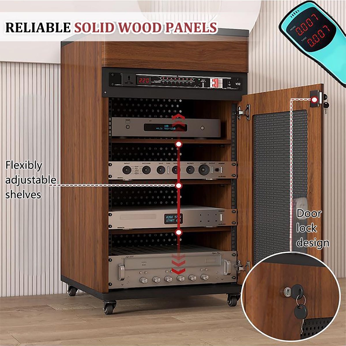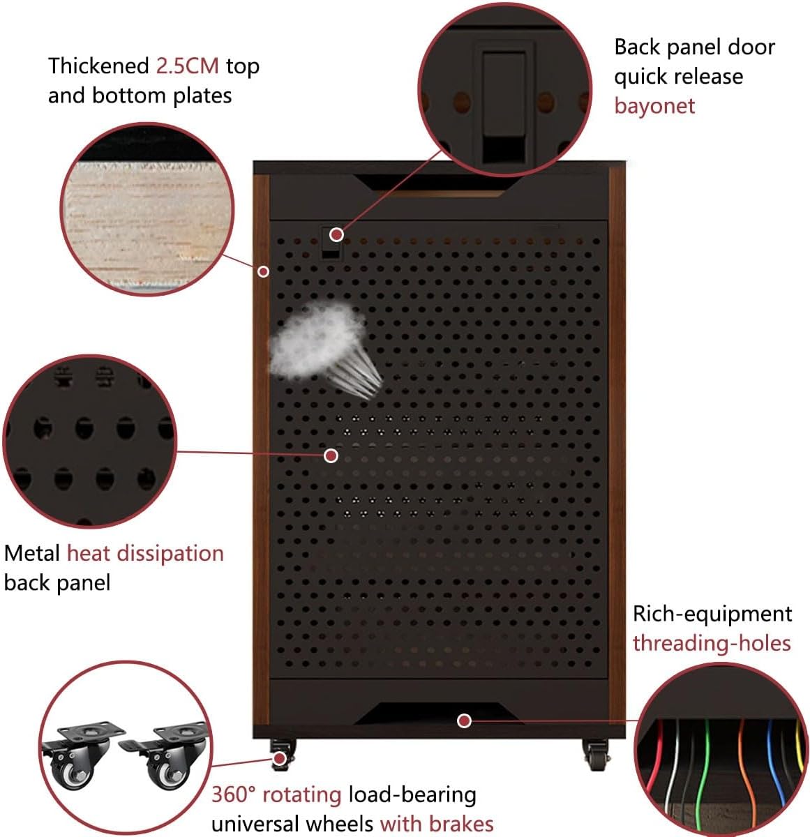 4 Tier AV Media Stand, Heavy Duty Audio Component Rack, Media Storage Cabinet with Adjustable Shelves, Tier Audio Rack Tower On Wheels, Media Storage Cabinet, Floor-Standing Audio Rack, Stereo Rack with DrawerKaverno creates audio-floor stands and audio-cabinets born from a passion for music. Founded by craftsmen and enthusiasts, the brand blends art and technology, offering stable, elegant-`designs. More than furniture, Kaverno is a companion that connects music, emotions, and-life.Features360° Rotating Casters with Brakes -- Equipped with load-bearing universal wheels that rotate smoothly and lock in place.Adjustable Shelves -- The shelf height can be customized to your-setup, making it easy to fit different machines and audio-equipment.Perforated Metal Back Panel -- Designed with a stylish metal plate featuring holes, which also helps-equipment cool more efficiently.U-Bar Cabinet Design -- Built with a U-shaped bar and universal fixing holes, providing stable support for amplifiers and components.Dual-Sided Heat Dissipation -- Both front and back panels use allowing smoother heat release through convection.Solid Wood Drawer -- A spacious wooden drawer offers convenient storage for microphones, amplifiers, and other accessories.SpecificationProduct Name -- 4 Tier AV Media Stand Cabinet Material -- Solid WoodApplicable scenes: home/office/shop/theater, etc.Package Includes1 x Modern HiFi Audio RackWarm TipsDue to the influence of the monitor and light, the actual color of the product may be slightly different from the color shown in the figure. Thank you!Due to manual measurement, please allow a measurement deviation of 1-2cm.